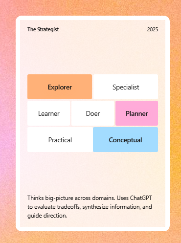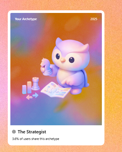 Recently, ChatGPT provided a “Your year with ChatGPT” overview for me, and it described my apparent archetype: Strategist.